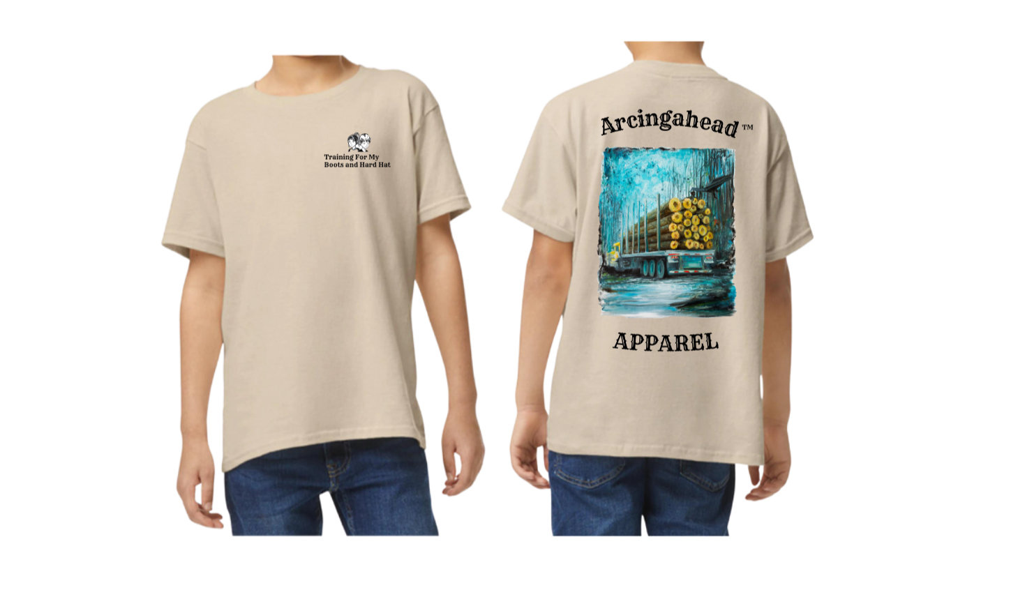 "Training for my boots and hard hat" supports all of the young "collar kids" anxious to learn a trade. These children are our futures. Whether the children want to show support for their family and friends in logging or just love a specific field of manual labor we have comfortable and breathable apparel for them to feel included and enjoy wearing to school or around town.