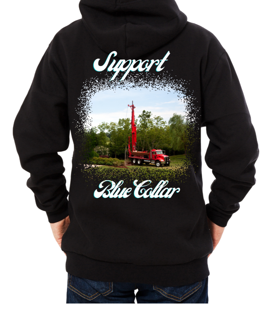 Introducing the new support blue collar unisex well drilling hoodie designed for maximum comfort! Wear this on the job or around town . One of a kind design only seen here with a comfortable feel and great quality.